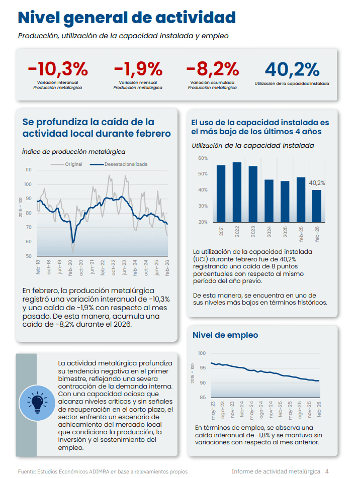 Desde CAFMEI compartimos el informe del Departamento de Estudios Económicos de ADIMRA sobre la actividad metalúrgica, con el objetivo de que nuestros socios cuenten con esta valiosa información para fortalecer su planificación.