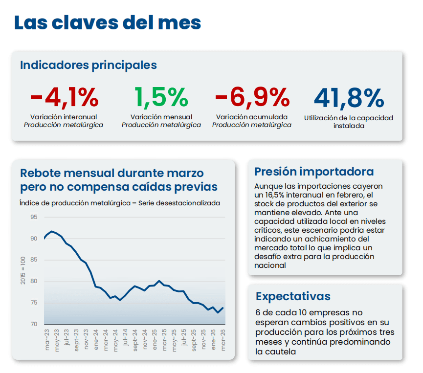 El relevamiento muestra un escenario de cautela en el sector, con caídas interanuales en la producción, niveles de capacidad instalada en mínimos históricos y expectativas moderadas para los próximos meses, en un contexto donde persisten los desafíos del mercado interno y la presión importadora.