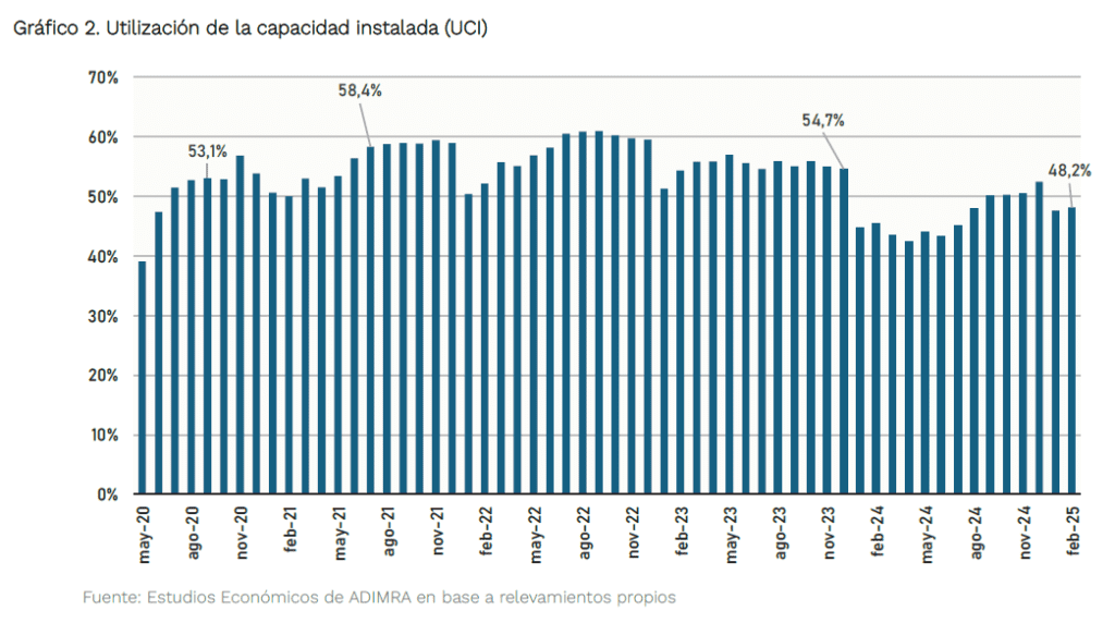 Por otro lado, la utilización de la capacidad instalada (UCI) registró un aumento de 2,8 puntos porcentuales con respecto al mismo mes del año previo.