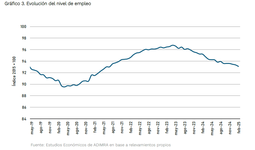 En cuanto al nivel de empleo, se observa una caída en términos interanuales de -1,8% y una ligera retracción con respecto a enero de -0,3%.